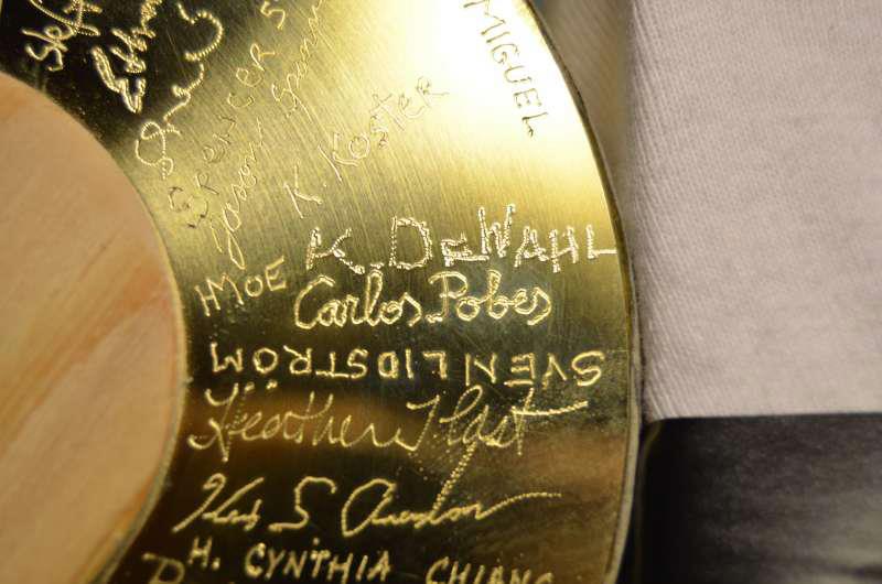 Para la posteridad: la rúbrica de Carlos sobre el disco que forma parte de la marca del Polo Sur Geográfico durante todo 2013