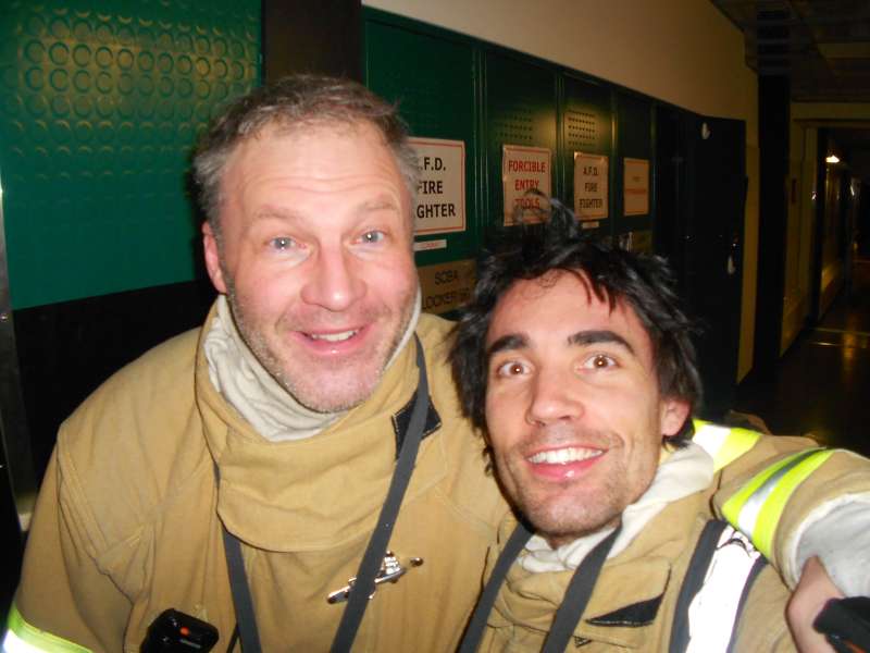 Sven (compañero del proyecto IceCube) y Carlos tras terminar uno de los entrenamientos antiincendios
