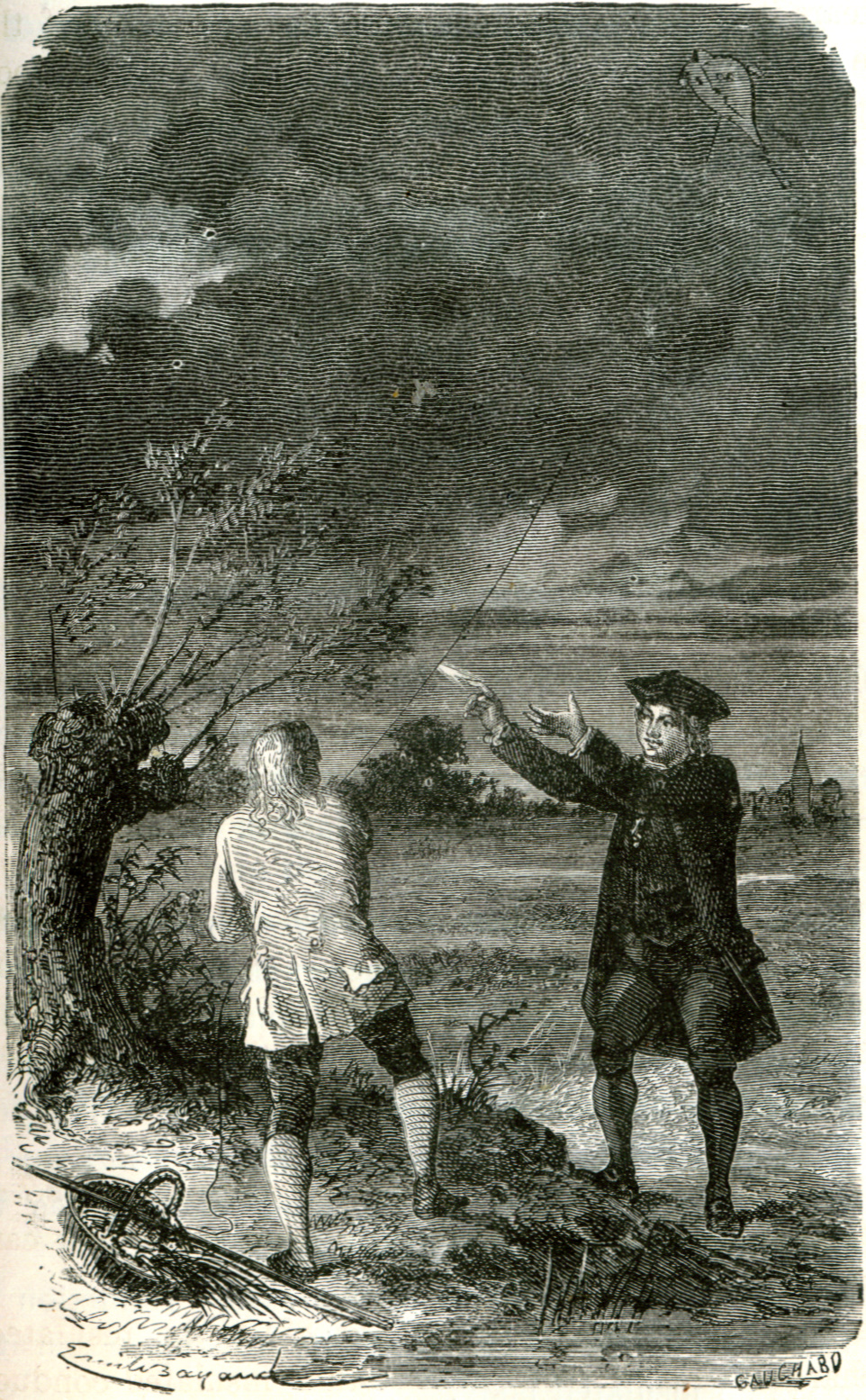 Benjamín Franklin (1706 – 1790), uno de los Padres Fundadores de los Estados Unidos de América, fue un prolífico inventor, científico y político estadounidense. Afortunadamente para la humanidad, y dados los turbulentos tiempos que vivió, se mostró mucho más cauto y prudente como político que como científico. En uno de sus más célebres experimentos, probablemente el más conocido, se propuso demostrar que los rayos y relámpagos de las tormentas tenían su origen en la electricidad acumulada en las nubes. La intención era loable pero el diseño del experimento era más que temerario ya que exponía a un desenlace fatal tanto a él como a uno de sus hijos.