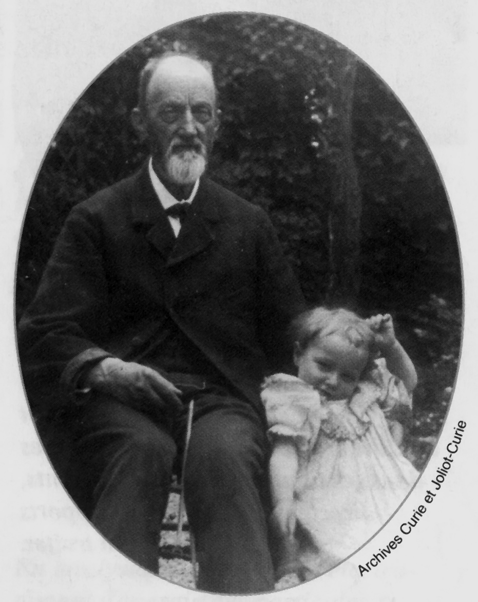Irène Curie vino al mundo cuando su madre Marie Curie iniciaba su investigación doctoral sobre radioactividad, pocas semanas después de que su abuela paterna muriese. Para que su padre estuviese acompañado, Pierre y Marie le invitaron a vivir con ellos en su pequeña casa de París. Ese gesto marcó el inicio de una estrecha relación entre abuelo y nieta que perduró siempre. Quería con locura a Irène y se sentía feliz cuidándola. Le enseñó mucho más a la pequeña de lo que le había enseñado nunca a sus hijos.