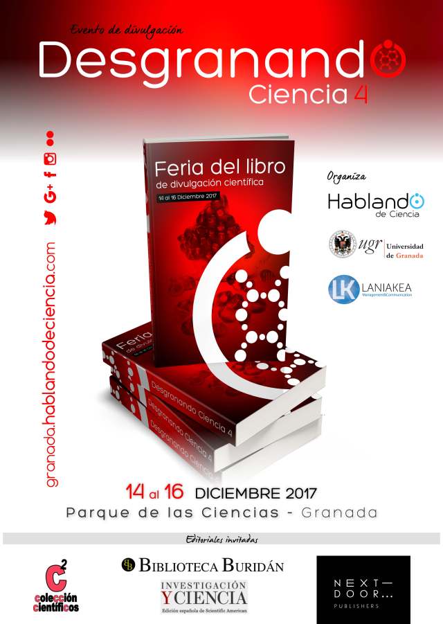 En la feria del libro de divulgación científica de Desgranando Ciencia 4, que se desarrollará en paralelo al resto de actividades programadas, Next Door tendrá el privilegio de estar acompañada por tres editoriales punteras en el campo de la divulgación: Biblioteca Buridán, Colección Científicos e Investigación y Ciencia.