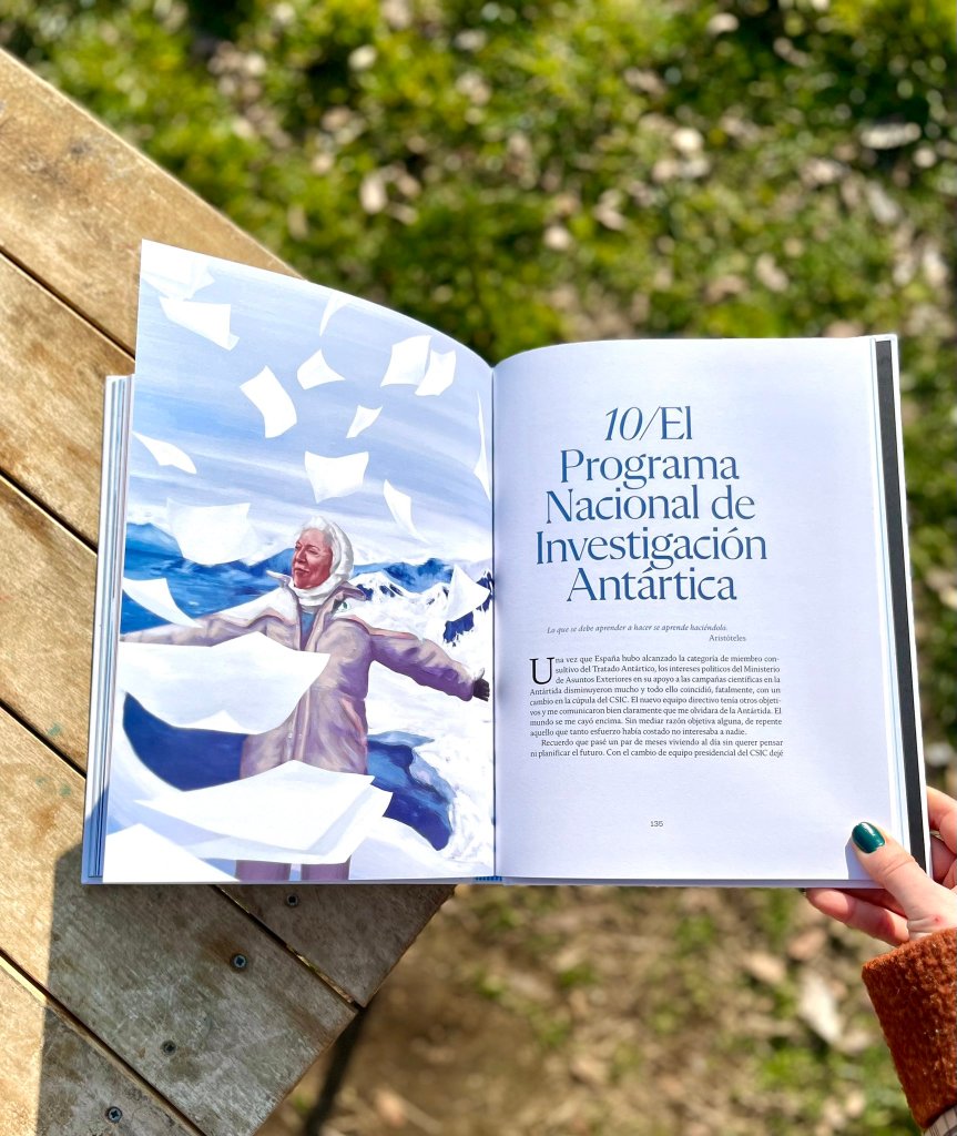 Por lo que a la parte científica se refiere, puesto que es un libro de divulgación, me parecía que lo más adecuado era actualizar los datos que aportaba Josefina en 1996 mediante notas al pie. Para hacerlas consulté con los científicos especialistas de PolarCSIC: Carolina Gabarrò (ICM), Asunción de los Ríos (MNCN), Joan Riba (UTM), Marisa Montoya (UCM), Erica Sparaventi (Univ. Cádiz), Andrés Barbosa (MNCN) y María Gema Llorens (GEO3BCN).